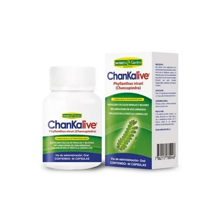 Chankalive Cápsulas x 40 de Nature’s Garden está diseñado para tratar cálculos biliares y renales. Su principal componente, la chancapiedra, es conocido por sus propiedades medicinales. Tome 1 o 2 cápsulas con las comidas, 2 o 3 veces al día.