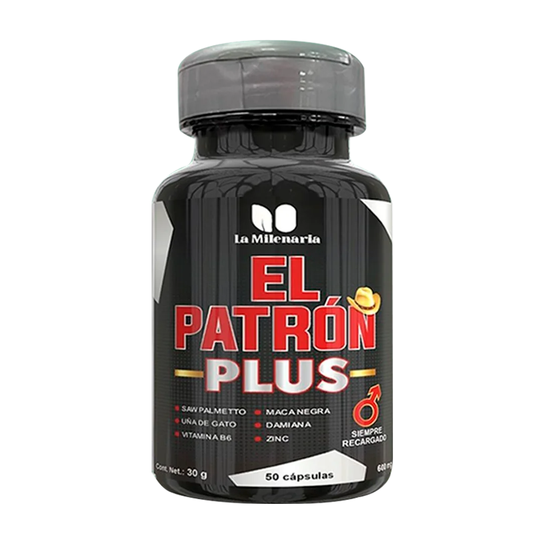 El Patrón Plus de La Milenaria es un suplemento innovador que utiliza extractos naturales como Saw Palmetto, Maca Negra y Una de Gato para promover la salud masculina. La combinación de estos ingredientes junto con Zinc y Vitamina B6 apoya funciones importantes como la salud prostática y hormonal. Ideal para hombres adultos que buscan mantener un equilibrio nutricional adecuado.