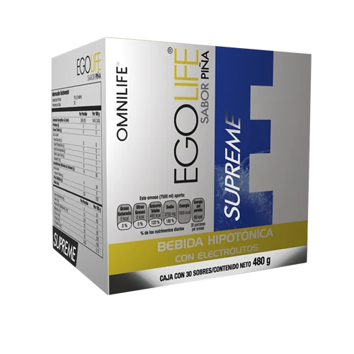 Ego Life Supreme de OMNILIFE es ideal para deportistas que buscan mantenerse hidratados y energizados durante y después del ejercicio. Con una fórmula que incluye magnesio, sodio, calcio y potasio, este suplemento proporciona los nutrientes necesarios para apoyar el rendimiento físico. Su sabor a piña y bajo contenido en azúcares lo convierten en una opción refrescante y funcional para mantener el equilibrio electrolítico y energético del cuerpo.